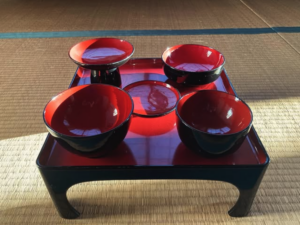 百年前の銘銘膳。大正時代に新調されてどのくらいまで使われていたのでしょう。お寺の倉庫の一角を占めていて、使う機会もないものだから風景になっていたのだけれど、開けてみてびっくり。漆の美しさが今も残っていました。欠けたり汚れていたものもありまりましたが、綺麗なものを拭きあげて消毒してから、今回の禅リトリートで使おうと思っています。
